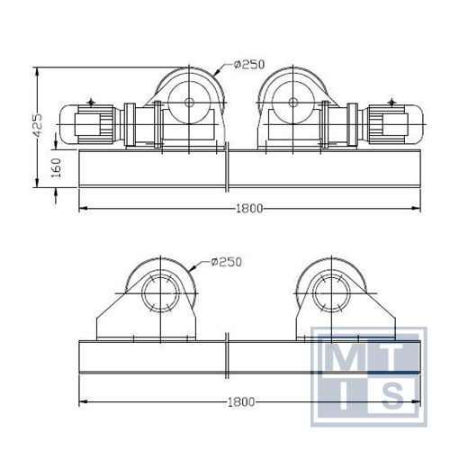 Het aangedreven deel heeft twee motoren, welke traploos in snelheid te regelen zijn.