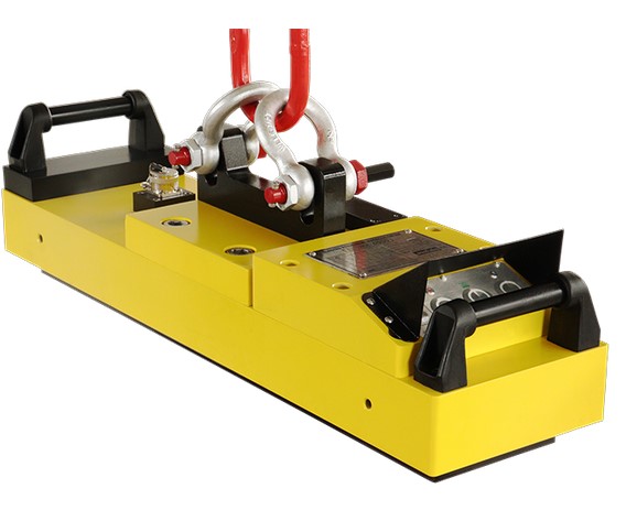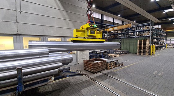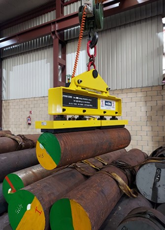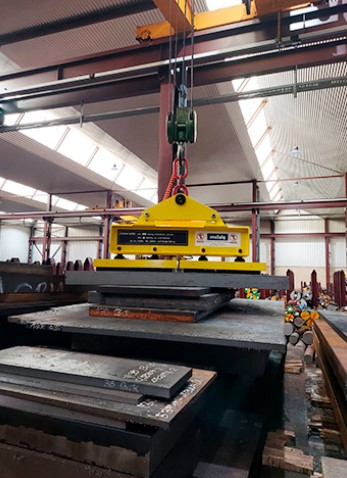 De electropermanente hefmagneten werken op netstroom en kunnen vlak materiaal tot 5.000 kg transporteren.
