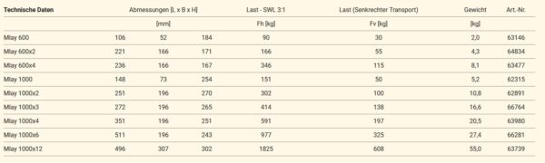 De handbediende permanente hefmagneten met draaibare enkele of dubbele haken zijn ideaal voor horizontaal en verticaal transport van materialen. Er is een breed scala aan Mlay-hefmagneten beschikbaar met draagvermogens tussen 90 kg en 1825 kg voor verschillende materiaaldiktes. Het vlakke magneetveld is een ander voordeel bij het ontstapelen van platen of werkstukken. Verwisselbare poolschoenen maken individuele oplossingen mogelijk. Zo kunnen bijvoorbeeld hoekprofielen of ronde staven met verschillende afmetingen worden getransporteerd.