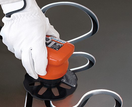 Het compacte ontwerp en het lage gewicht bieden een uitstekende ergonomie. De machine heeft een krachtige en betrouwbare pneumatische aandrijving. De afschuining kan worden aangepast via de draaitafel.